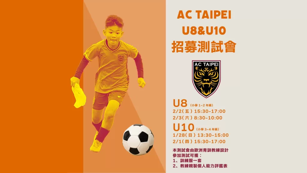 AC Taipei U8 & U10 梯隊招募測試會開始報名!